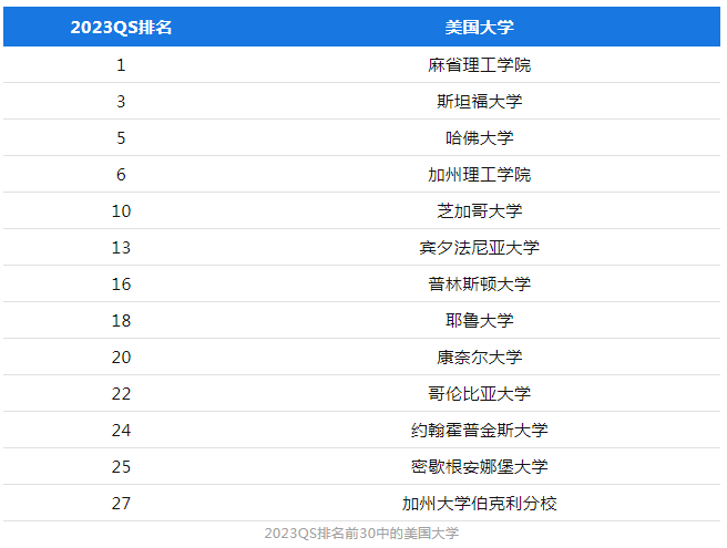 美国的高等教育质量在全世界首屈一指,在最新的QS世界大学100强排行榜中,有27所为美国大学,其中有17所排名皆在前50名中。